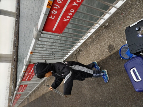 寒い上に何時降り出してもおかしくないような悪天、釣りインストラクターも3名の参加のみ。しかしながら我々が清掃を始めると、小さなお子さんが自分もやるとおやごさん共々参加していただけ、嬉しい限りである。
